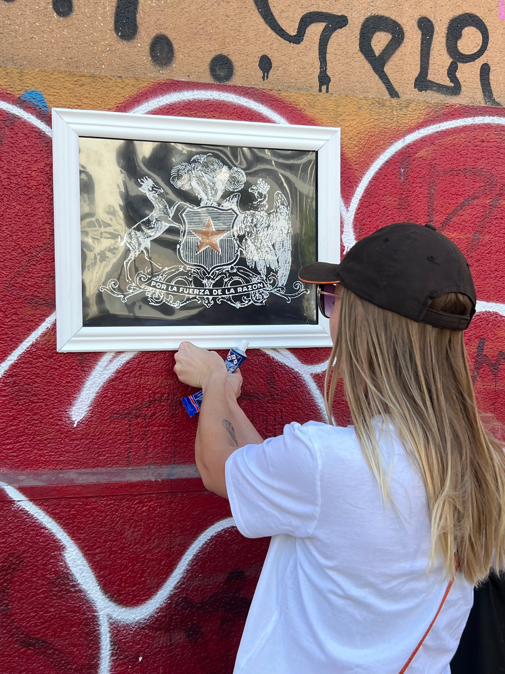 Two of the artist’s prints were placed publicly on the streets of Santiago de Chile, while the complete series remains available.