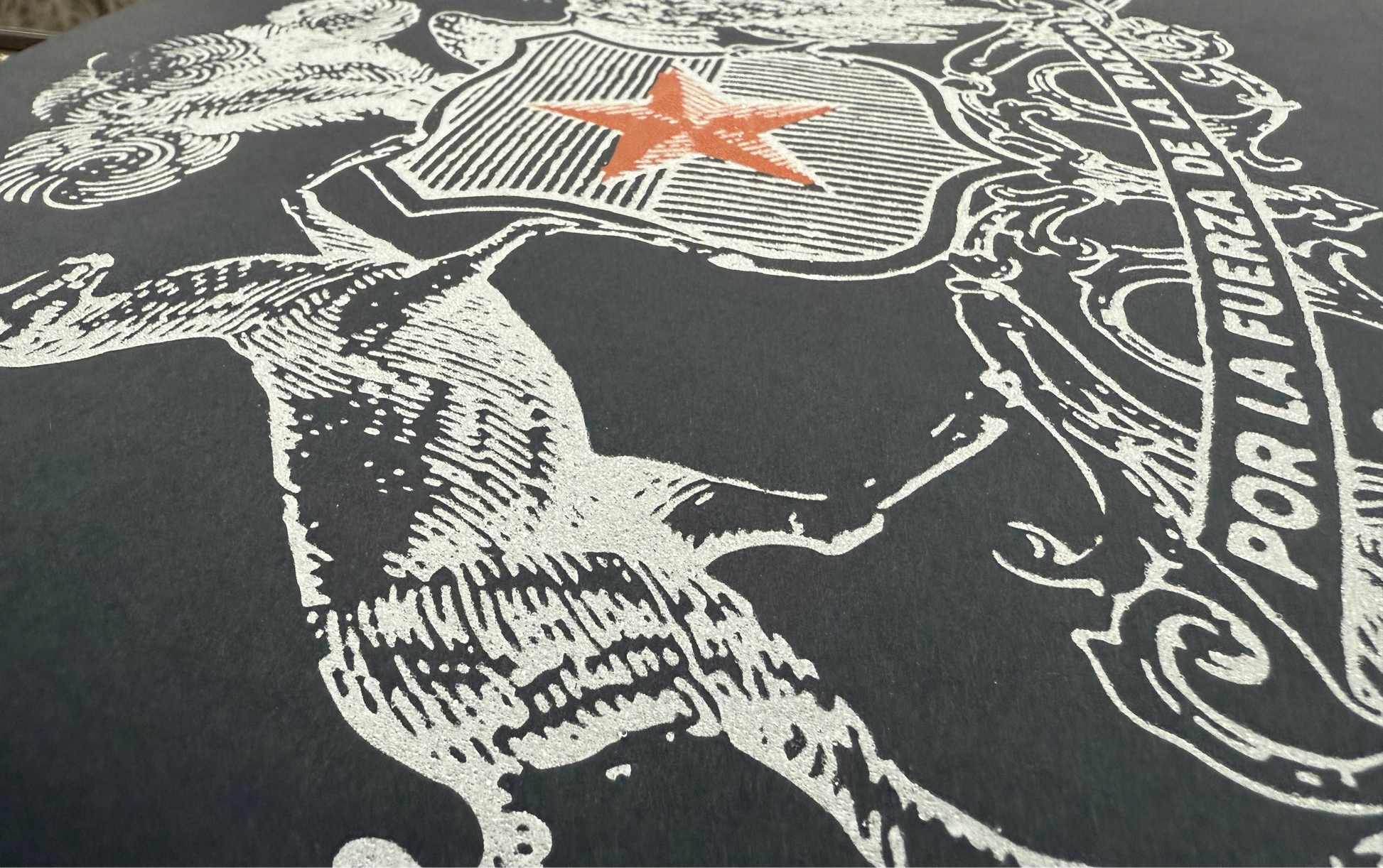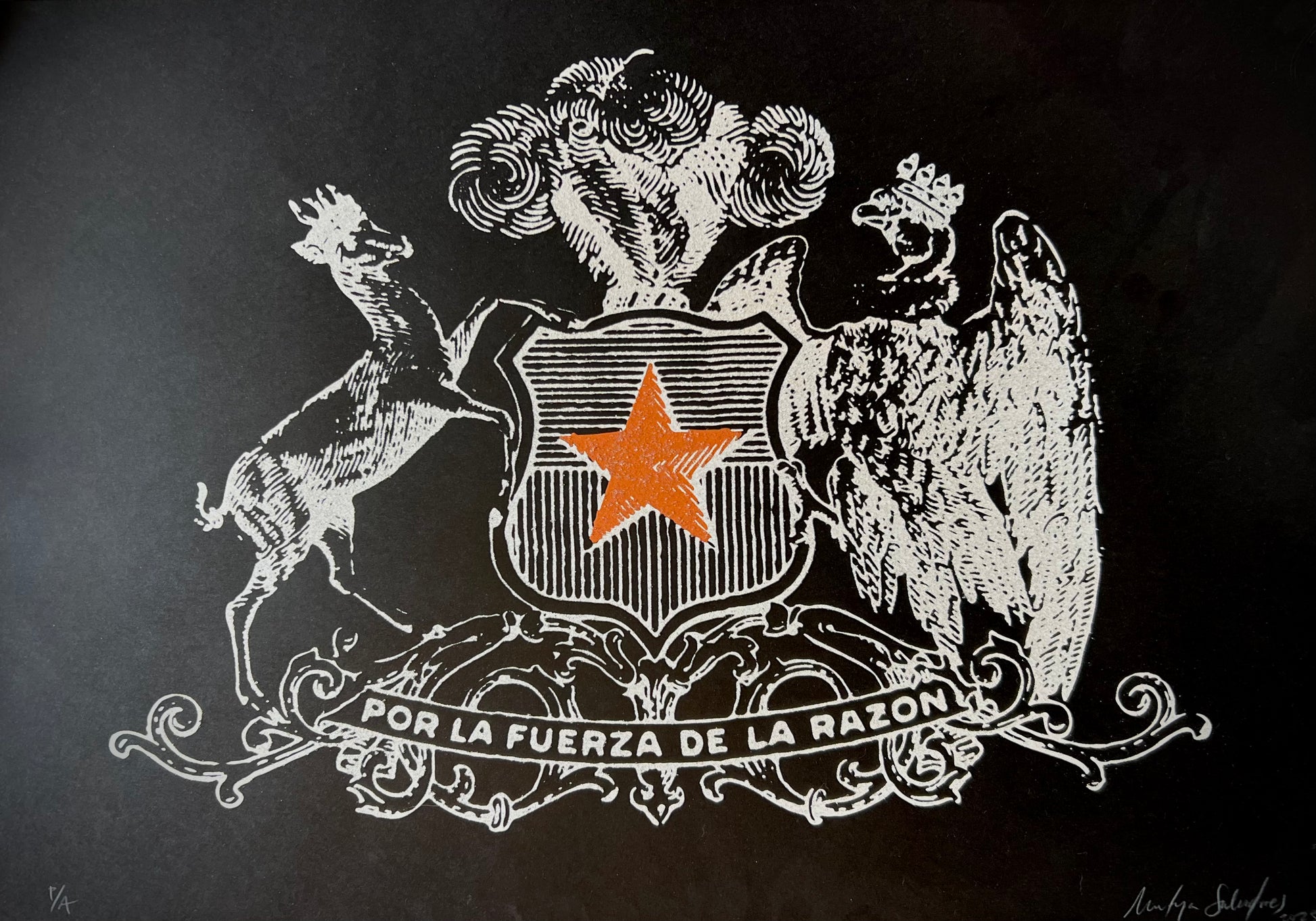 The work reinterprets Chile’s national coat of arms, which bears the motto “By Reason or by Force,” questioning the idea that progress must depend on coercion. Instead, it invites reflection on how life could improve if guided by the strength of our reasoning.